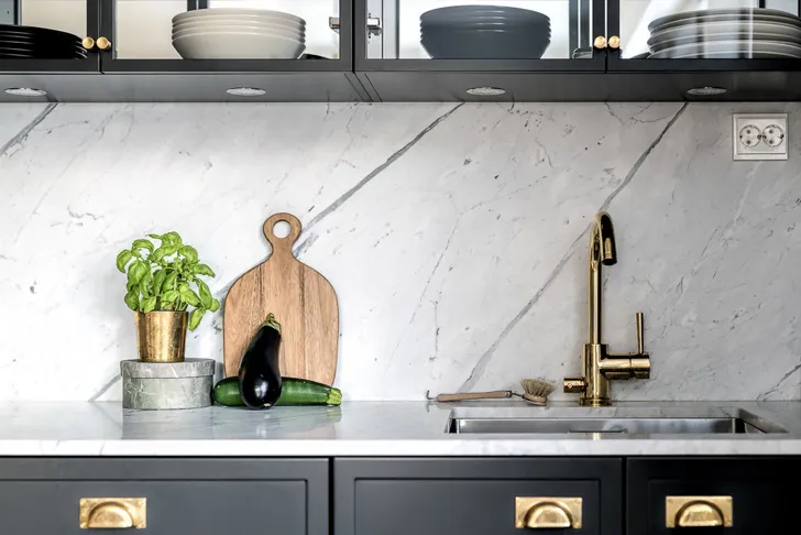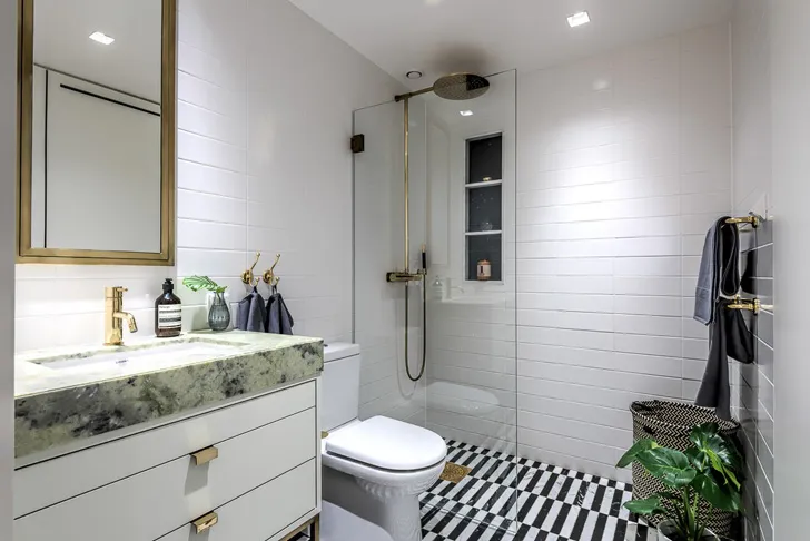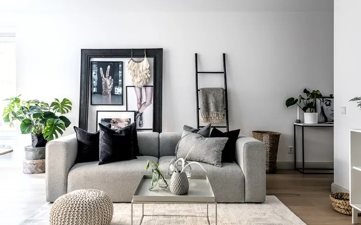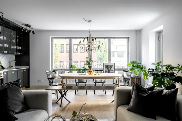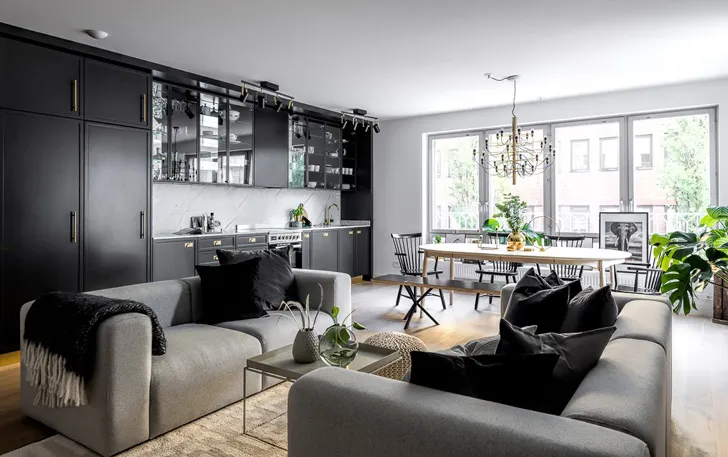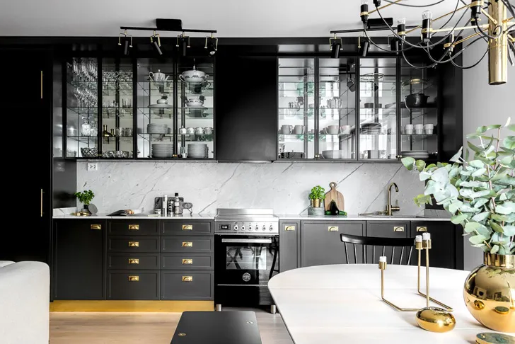 Чорно-білий інтер'єр із золотими деталями (81 кв. м)