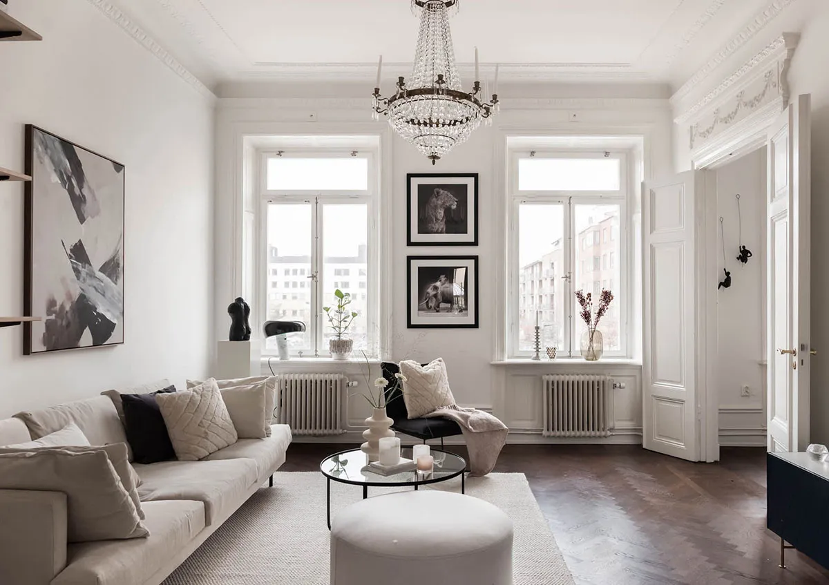 Елегантний білий інтер'єр із стильними темними акцентами (82 кв. м)