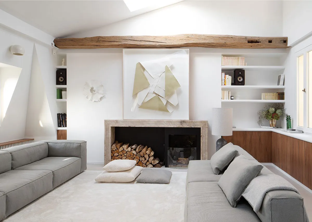 Балки та сучасний декор: ефектна квартира під дахом у Парижі