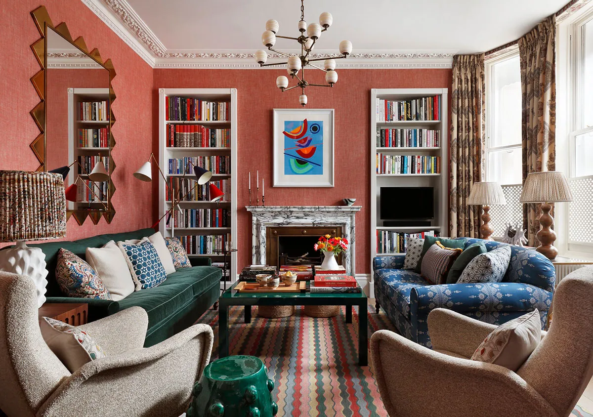 Сміливі відтінки в дизайні красивого англійського таунхауса