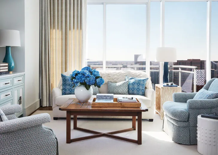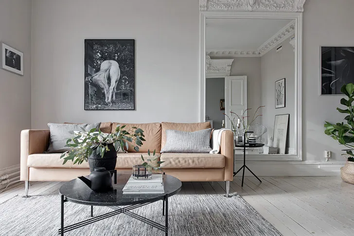Білі стерильні поверхні інтер'єру не допускають жодної випадкової лінії чи деталі. Кухня, столова та гостьова кімната об'єднані в одне простір відкритої планування. По іншій стороні від роздільної стіни знаходяться також строгі спальні.