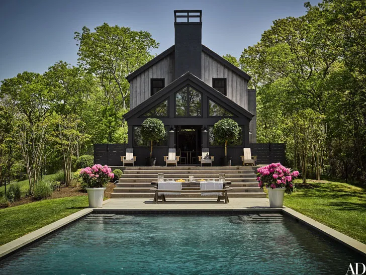 Розташований перед дімом прямокутний пруд відображає чіткі форми будинку, а його геометричний силует благородно вирізняється на тлі холмистого ландшафту.