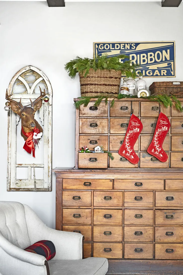 Коли в сім'ї торговців антикваріатом прикрашають дім до Різдва, це завжди цікаво. У цьому неймовірно затишному садовому котеджі в штаті Теннесі багато чого подивитися, щоб і на блошиний ринок не йти. Для святкового оформлення сім'я обрала традиційну червоно-зелену гаму, і, потрібно визнати, на тлі старієної меблі та декору вона виглядає чудово!
