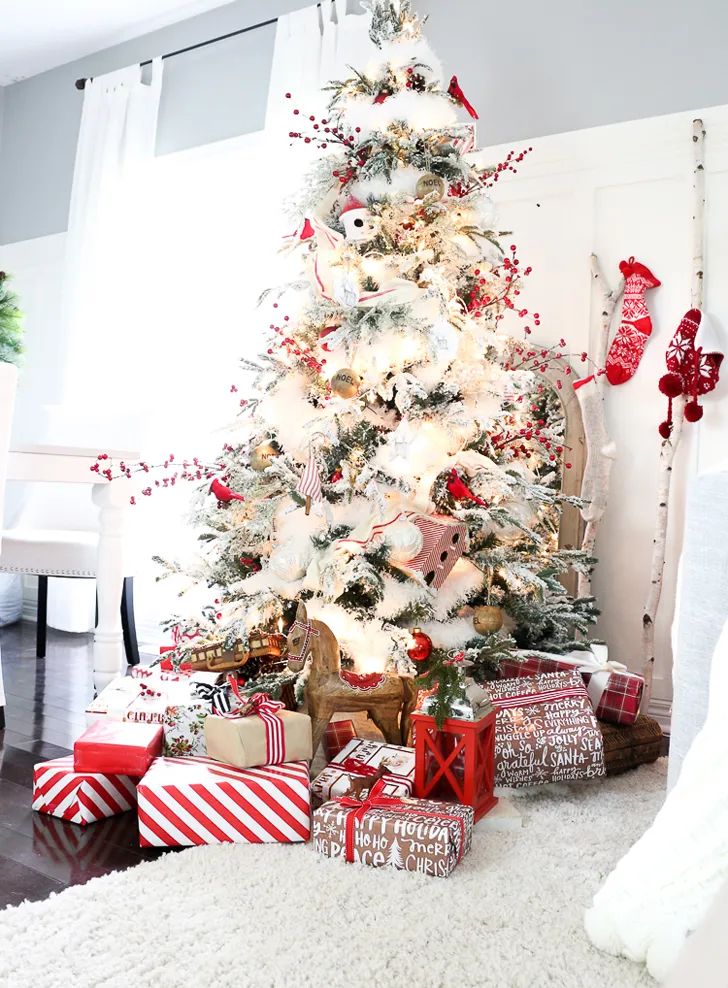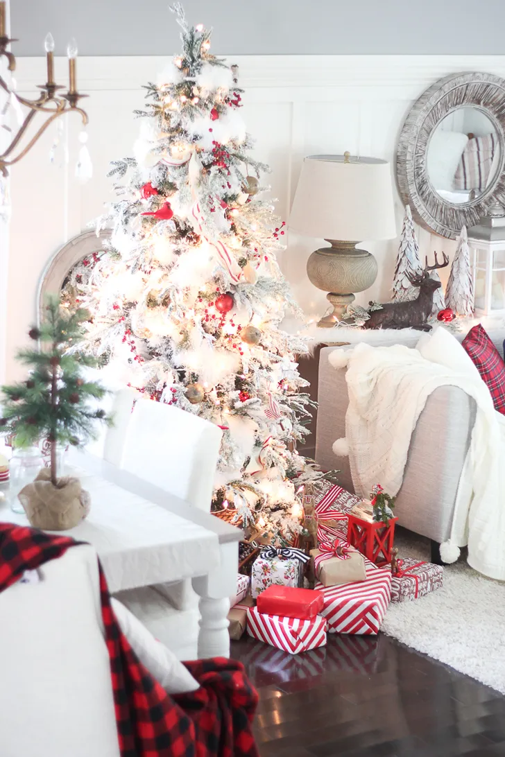 Власнице цього милахівського дому хотілося зібрати всіх, щоб вони зупинилися і задумалися про справжнє значення цього чудового сезону, і жили кожен день, не турбуючись про список справ, і справжньо насолоджувалися магією Різдва! Портик прикрашено дуже щільно — це перше, що бачать гості, і задає настрій для решти будинку. Всередині оформлено з червоними акцентами на білому фоні, дуже яскраво і радісно!