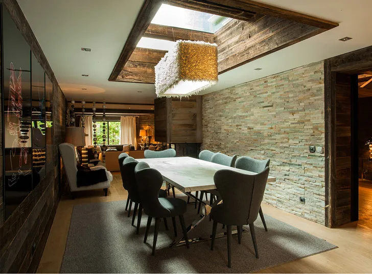 Глибокі кольори та тонкі лінії — ознака особливого смаку та інтелектуальності. Це шале у французьких Альпах нагадує новели Джека Лондона. У ньому є самобутність і свіжість, гострота сприйняття та наймиліша простота. Взгляньте на ці лінії. Кожна окремо не створює такого настрою, але взяті разом, вони реалізують головну задумку автора — показати глибину домашньої атмосфери й одночасно відокремити мислення від повсякденності. Тут починаєш бачити глибше, погружатися в уют і комфорт свідомо. Інтелектуальний комфорт — новий напрям у дизайні інтер'єру. Підкреслюючи індивідуальність, розслабитися; не вимкнувши інтелект, відпочити тілом і душею.