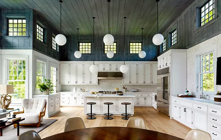 Мінімалістичні деталі інтер'єру включають підлогу з природного каменю, легка сходівка з металу та дерева, висячі стельни та каміни.