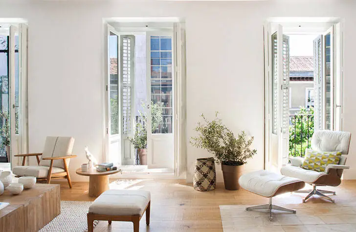 Білі стіни та світле дерево в інтер'єрі квартири в Іспанії