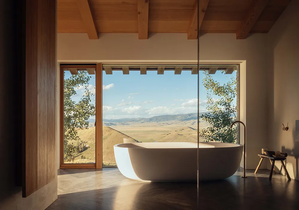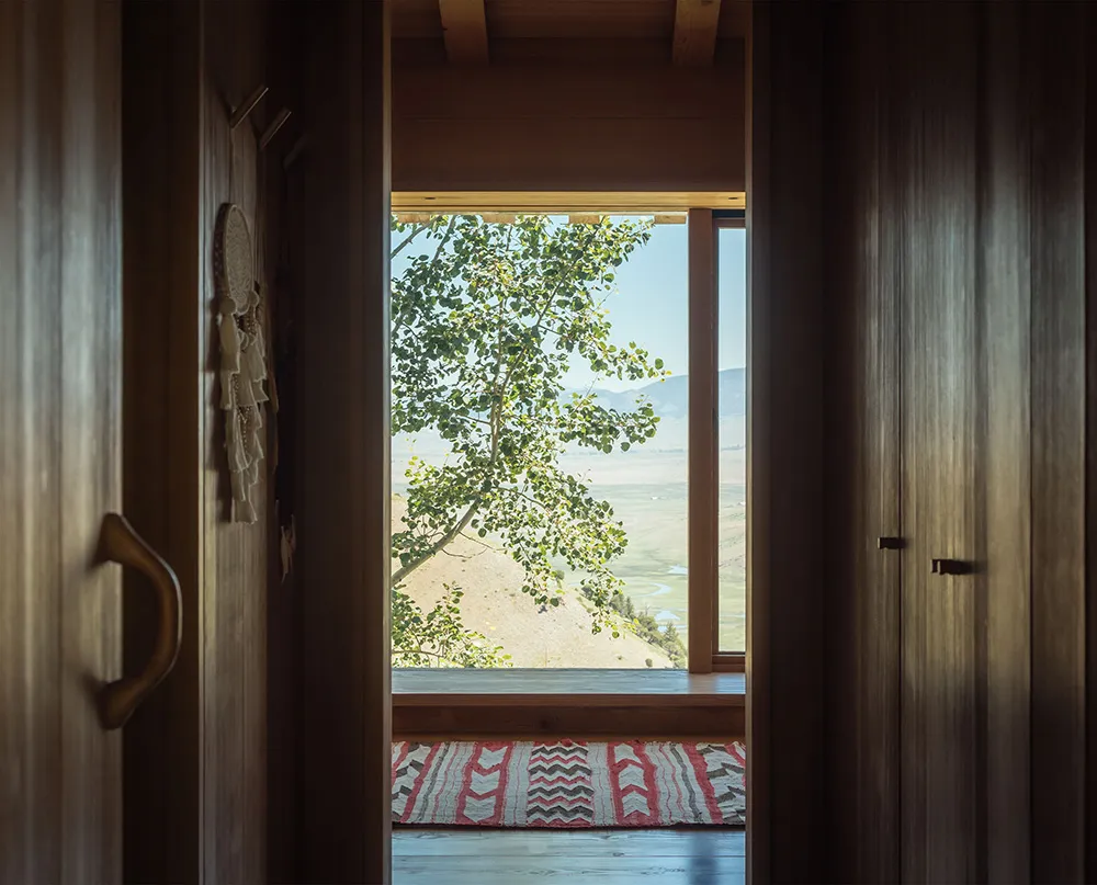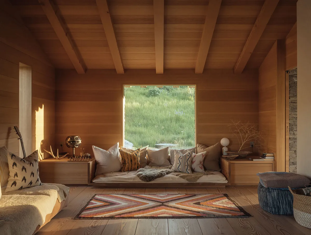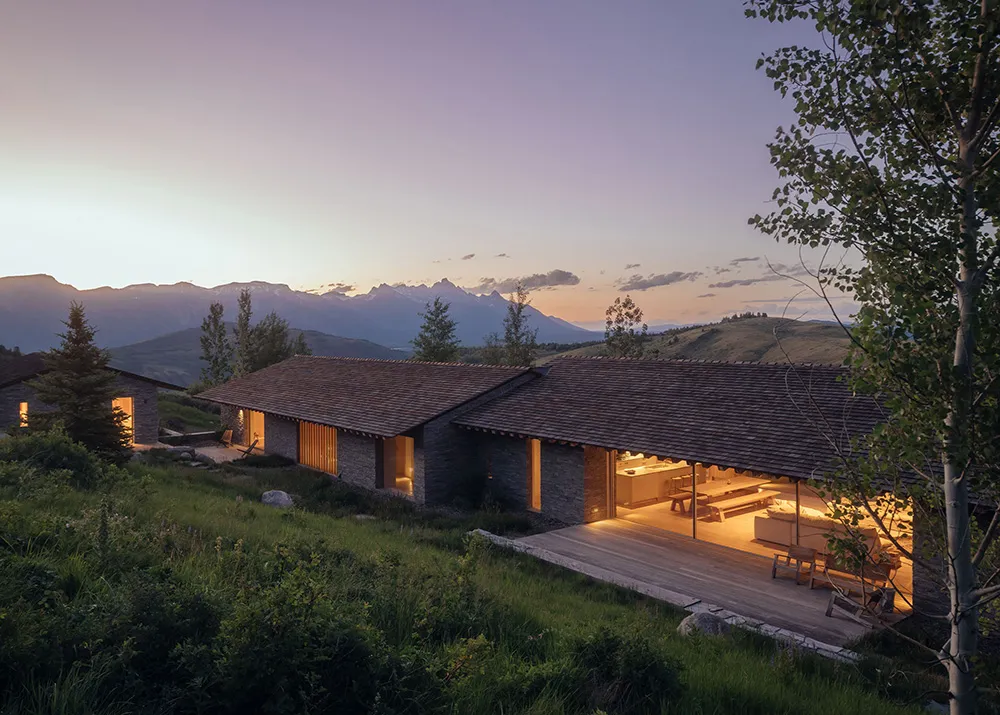 Найбільше вражає в цьому гірському будинку в штаті Вайомінг — розкошні види на багато кілометрів із відкритої гострої кімнати через величезні панорамні вікна.
