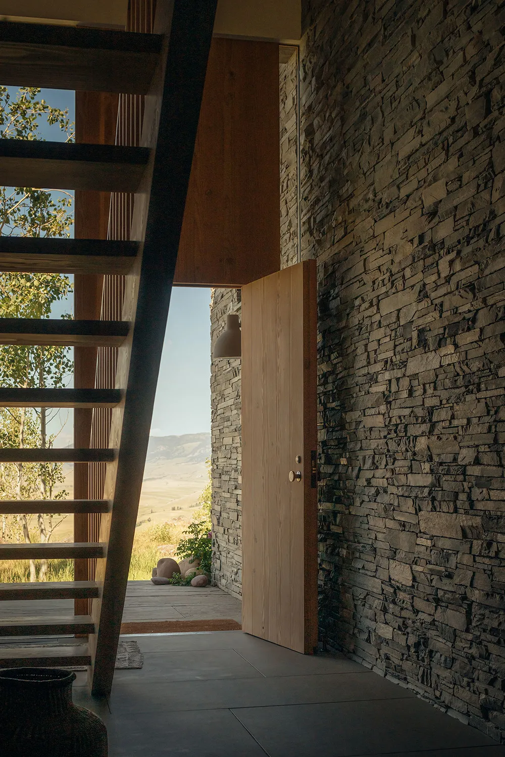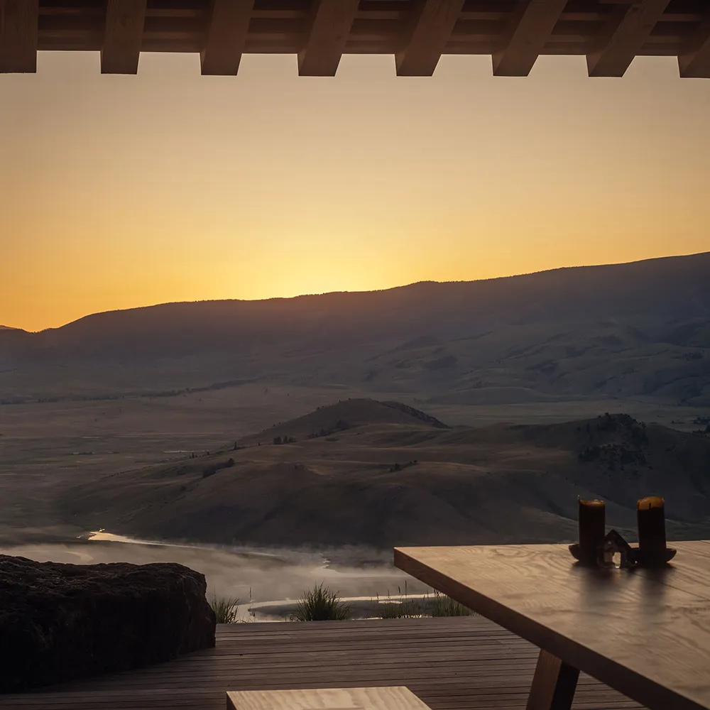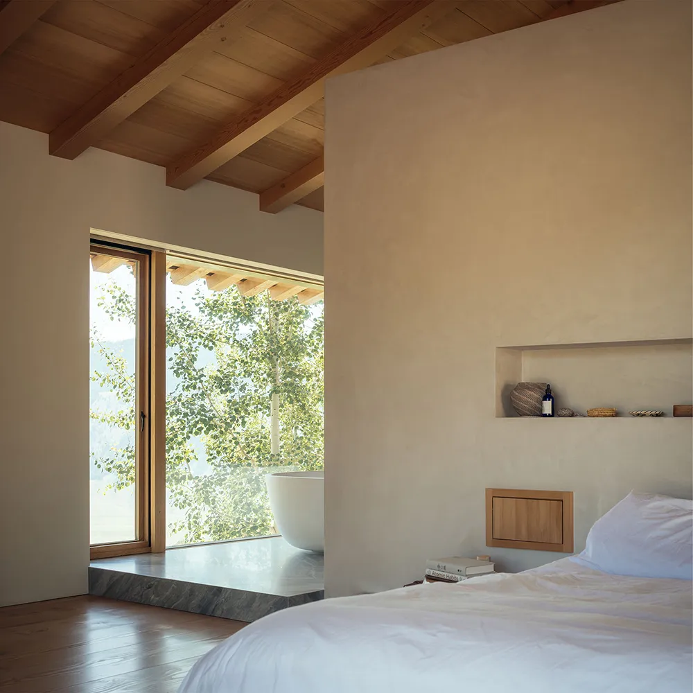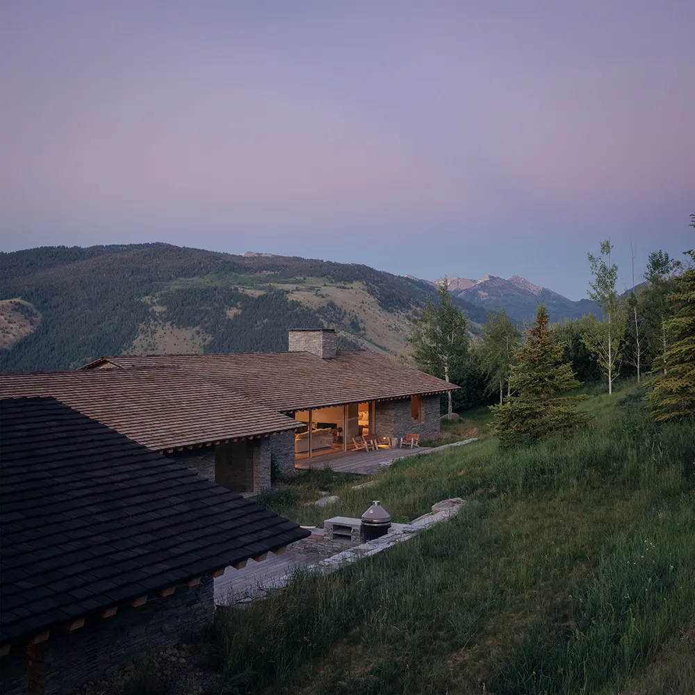 Найбільше вражає в цьому гірському будинку в штаті Вайомінг — розкошні види на багато кілометрів із відкритої гострої кімнати через величезні панорамні вікна.