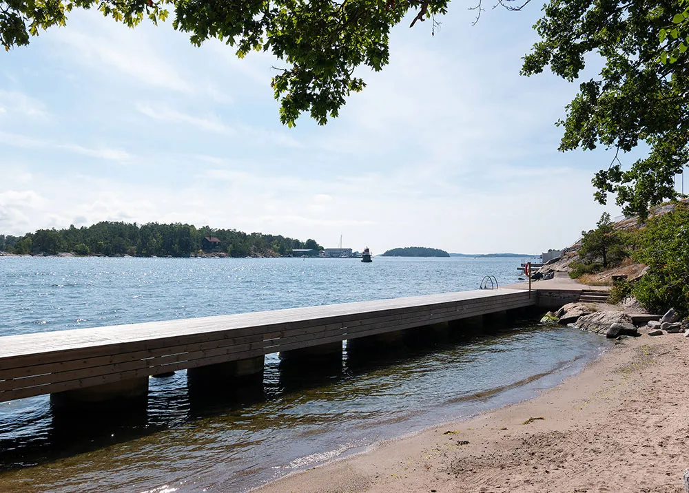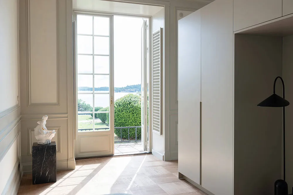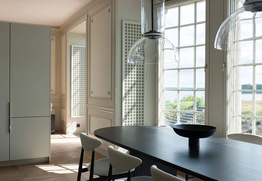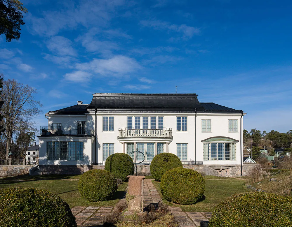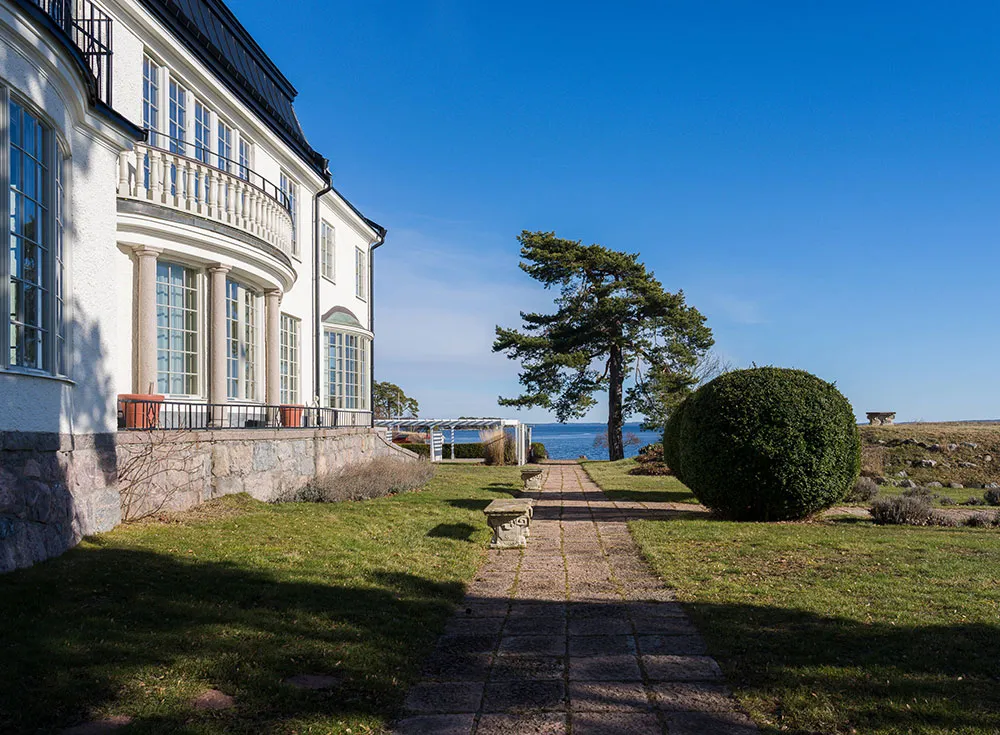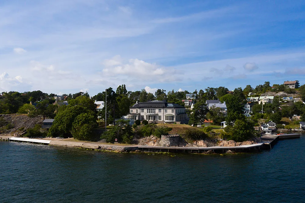 Ця чудова вілла на узбережжі в підмістях Стокгольма унікальна — вона була побудована у 1921 році і відзначається розкошним класичним виглядом із колонами та великими вікнами у два ряди.