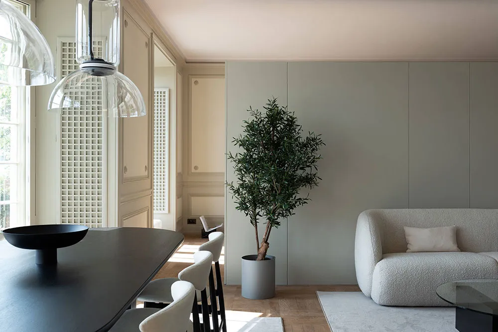 Сучасний інтер'єр у стильних білих тонах, наповнений класичною елегантністю