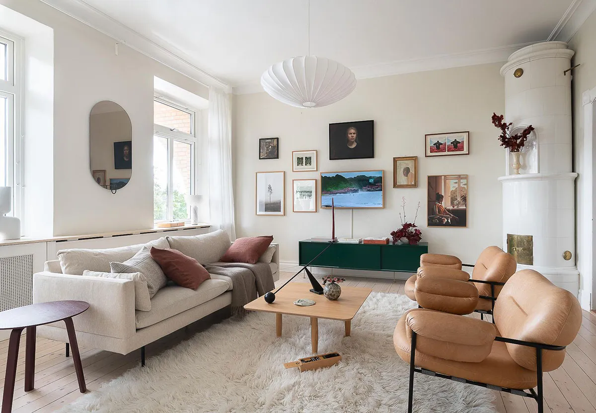 Пісочні тони, цегляна стіна та обоями: квартира в Гетеборзі (91 кв. м)