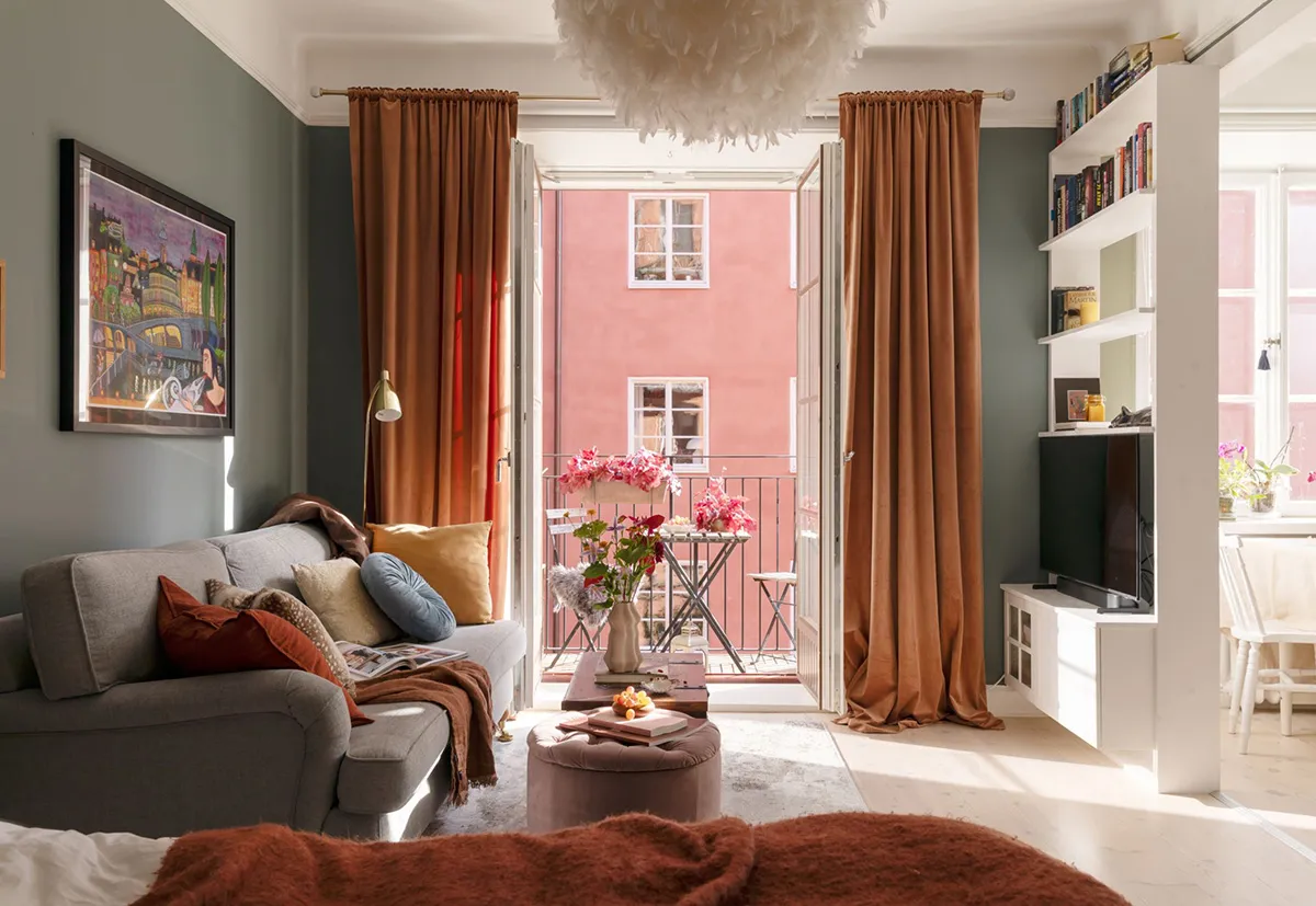 Сміливі кольори та осіннє настроєння: невелика квартира в Стокгольмі (32 кв. м)