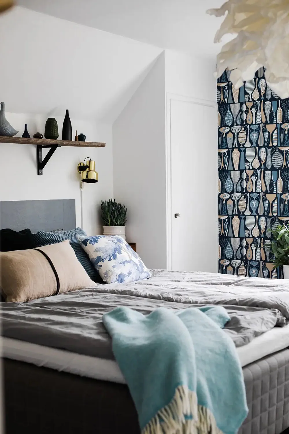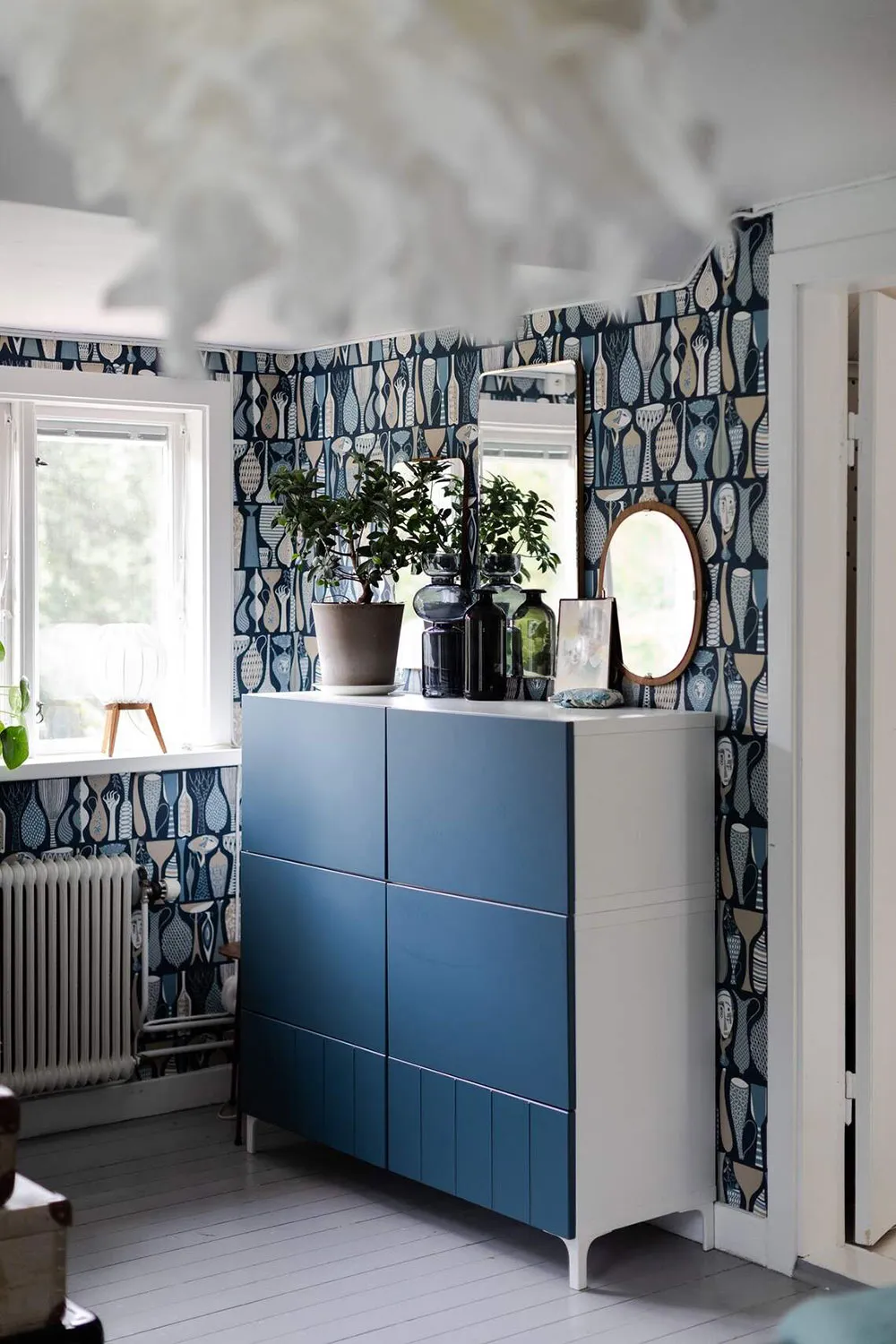 Синій стеля в гостиній та стильні деталі: спокійний інтер'єр у Гетеборзі (71 кв. м)