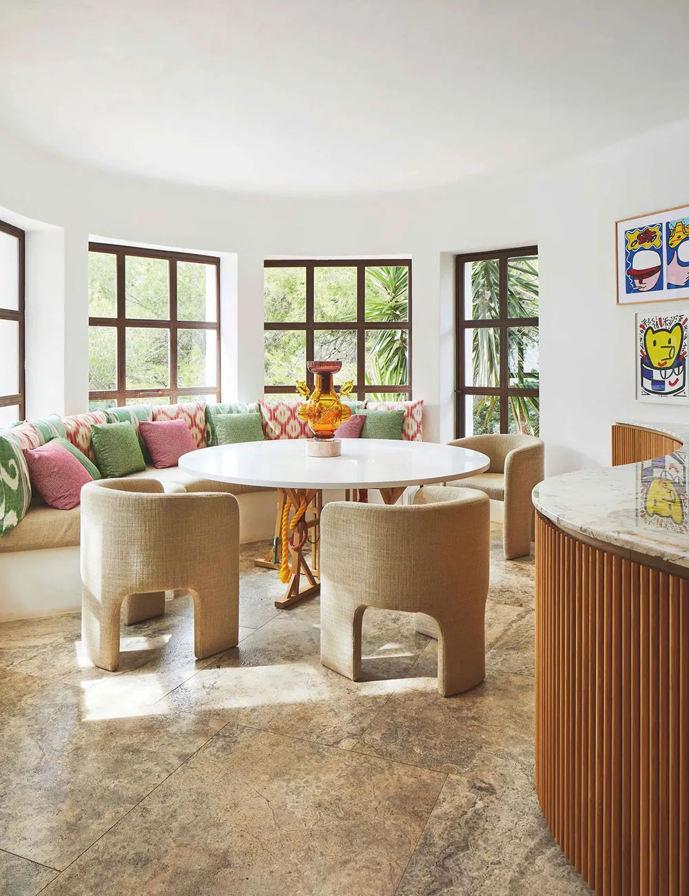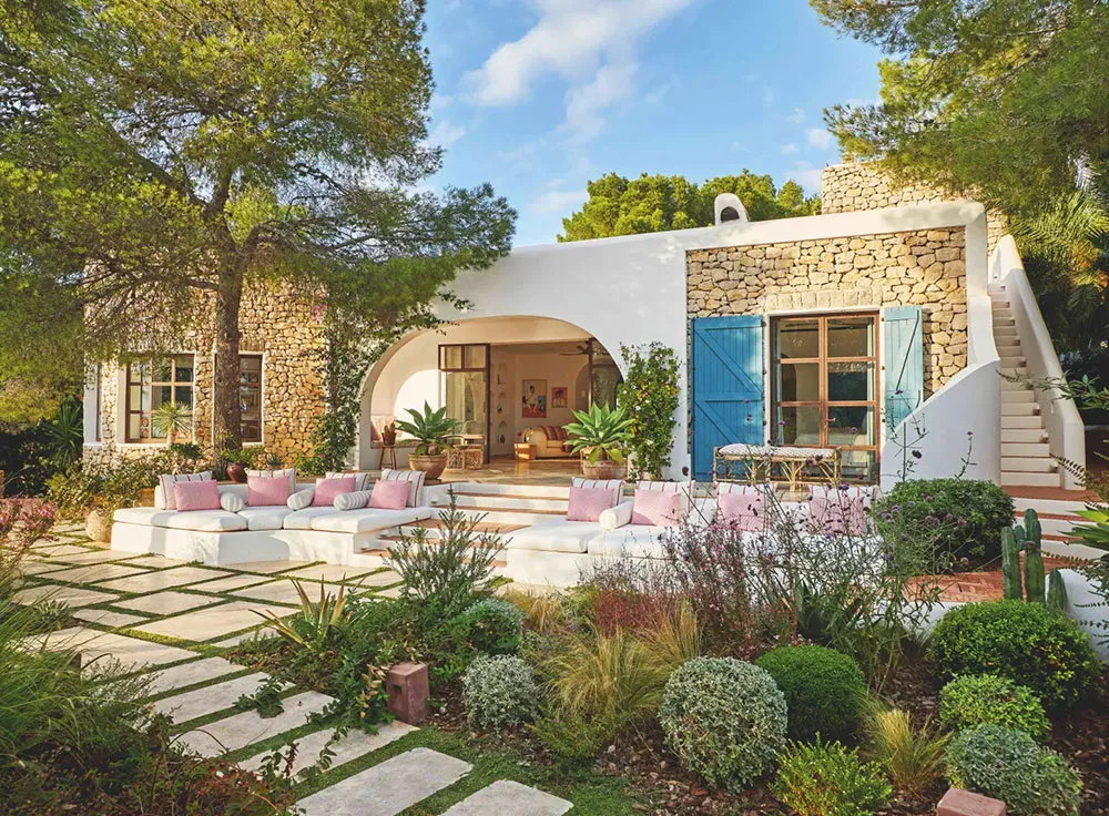 Ця чудова вілла на острові Ібіці має середземноморську архітектуру та характер, але дизайн інтер'єрів вийшов досить веселим і модним.
