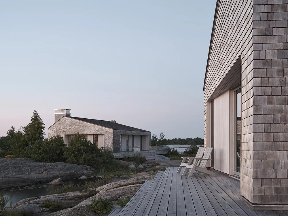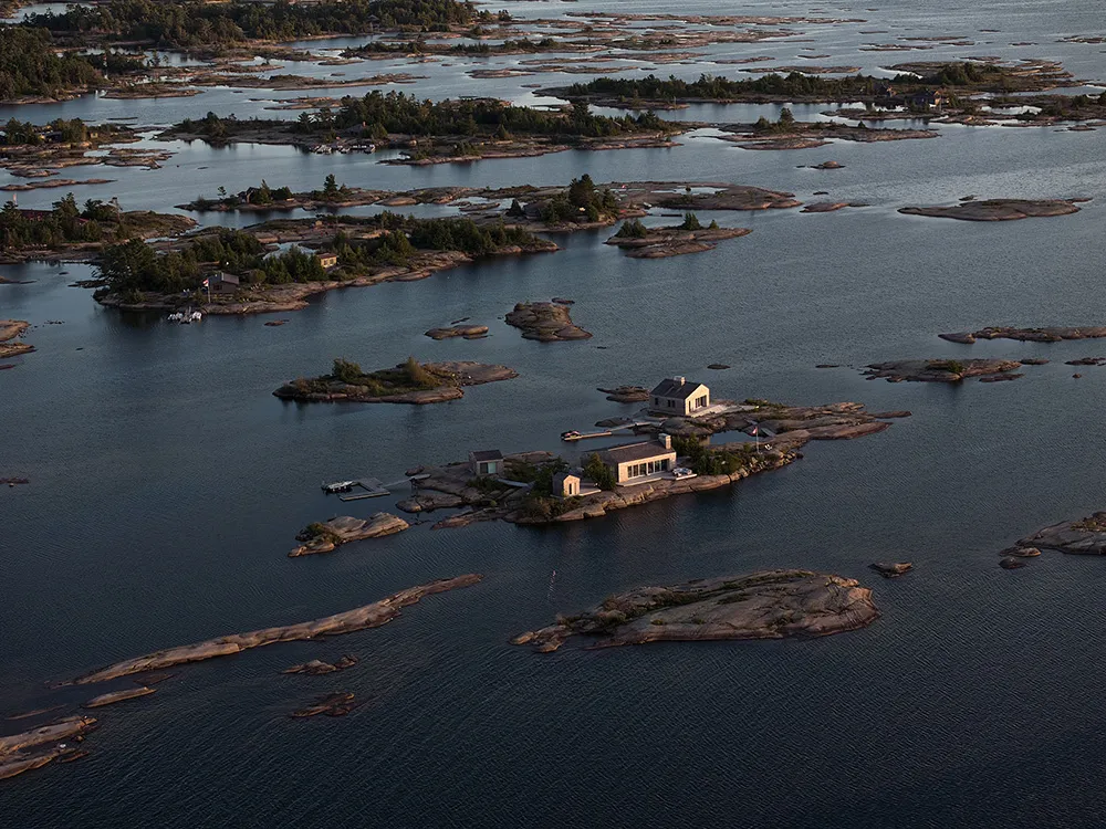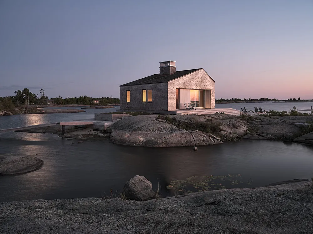 Місцевість, де розташований цей сучасний котедж в Канаді, нагадує Скандинавію — суровий скелястий берег із малими островками, дика рослинність та красні будинки правильної форми.