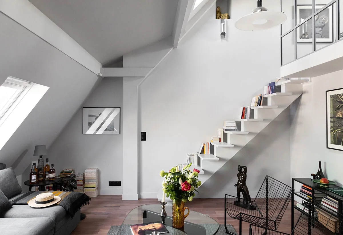 Чудовисько чорно-білий квартал на чердаку в Парижі (45 м²)