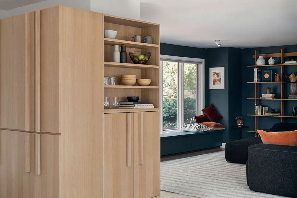 Кухня з дерева в інтер'єрі елегантної сучасної квартири в Нью-Йорку