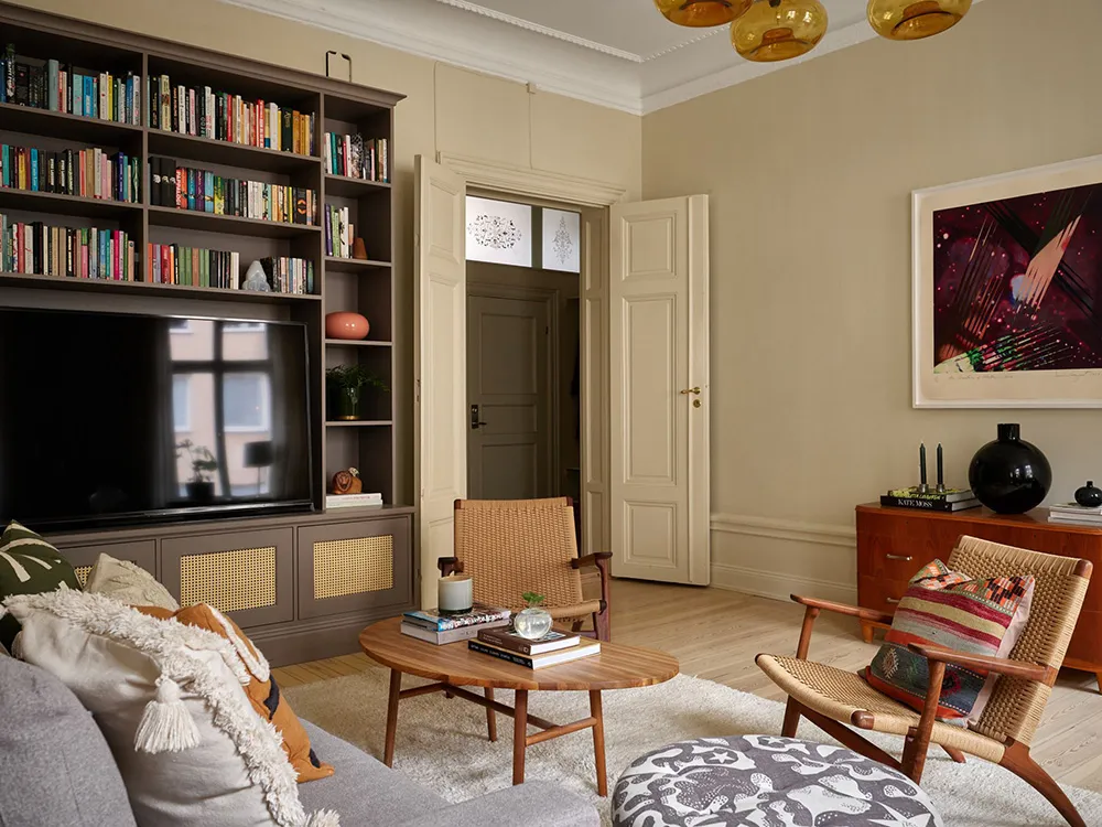 Постери та книги в дизайні стильної квартири в Швеції