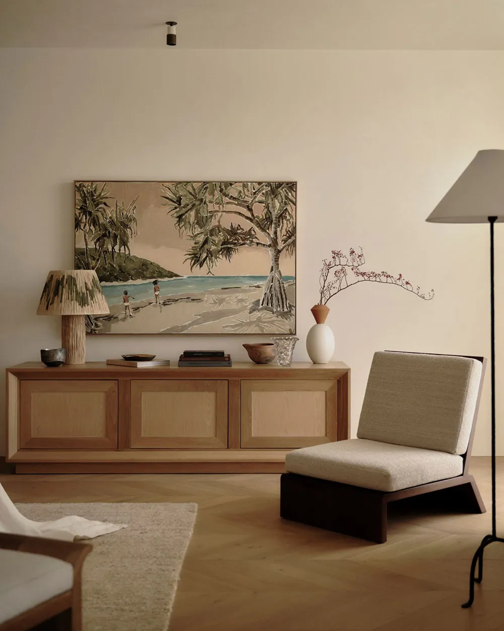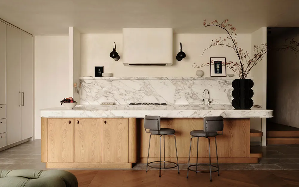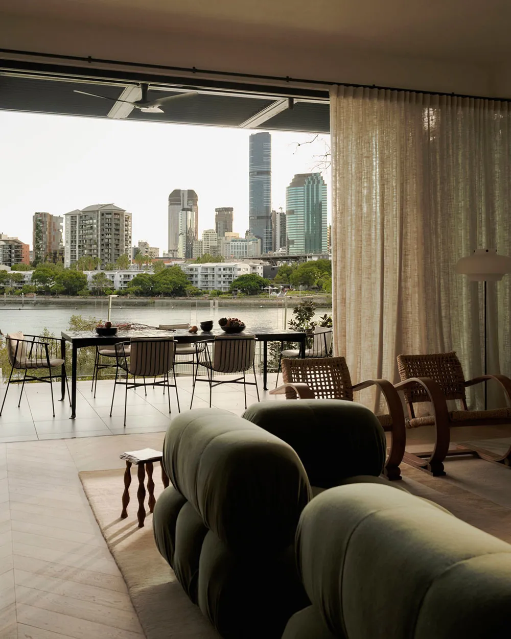 Хоча колірна палітра інтер'єрів цього сучасного будинку в Бризбені спокійна і нейтральна, його внутрішній простір відрізняється елегантністю меблів і декору.