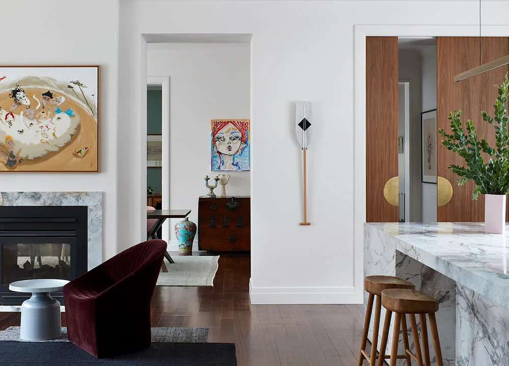 Легка світла основа, лаконічний сучасний дизайн і велика колекція картин сучасних художників на стінах — ось як можна коротко описати дизайн будинку сім’ї мистецтвознавця в Мельбурні.