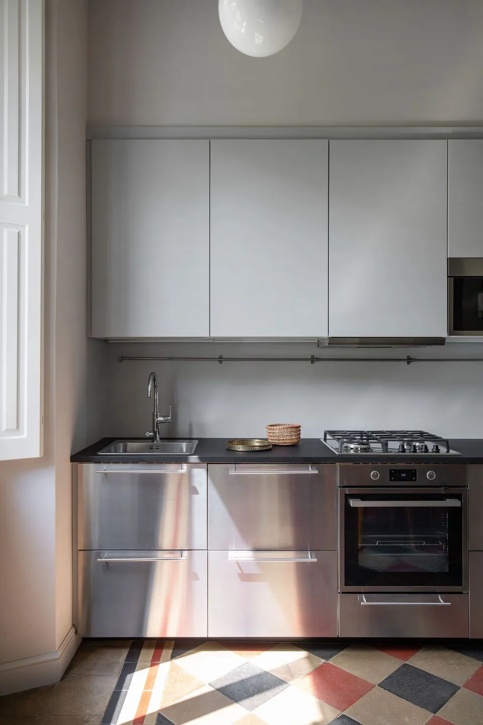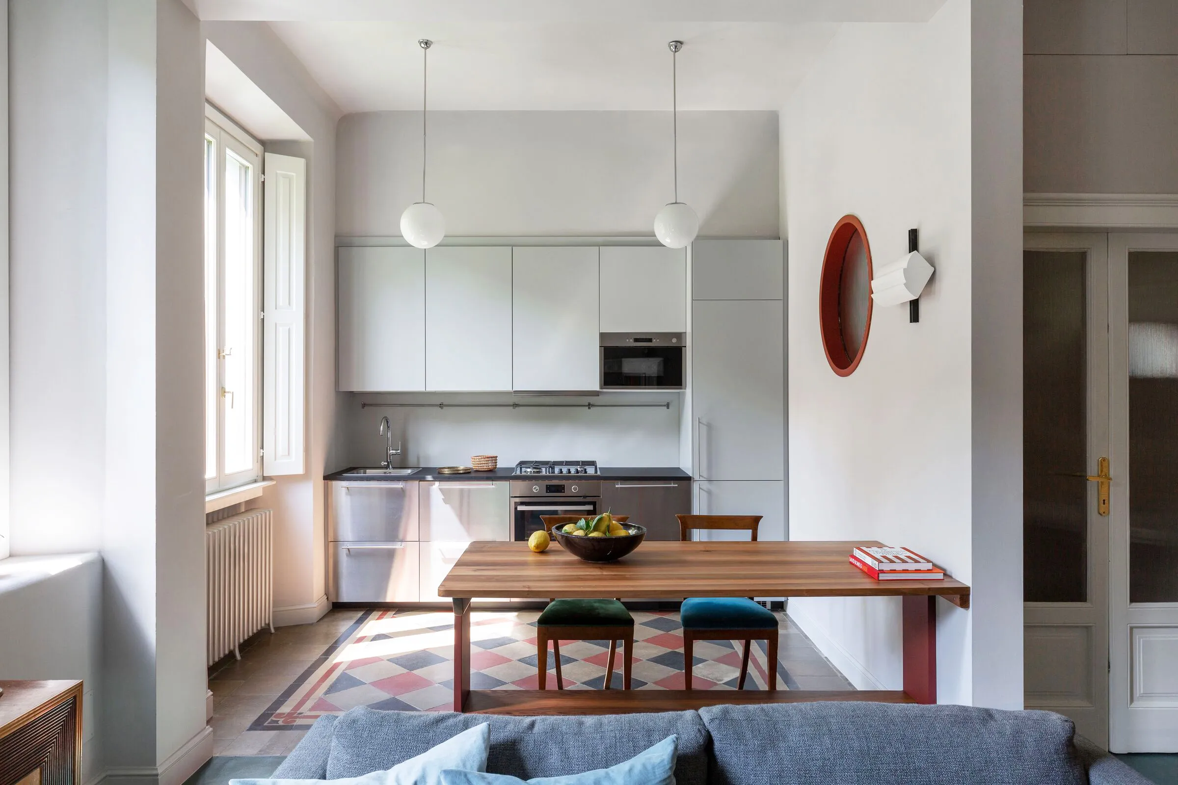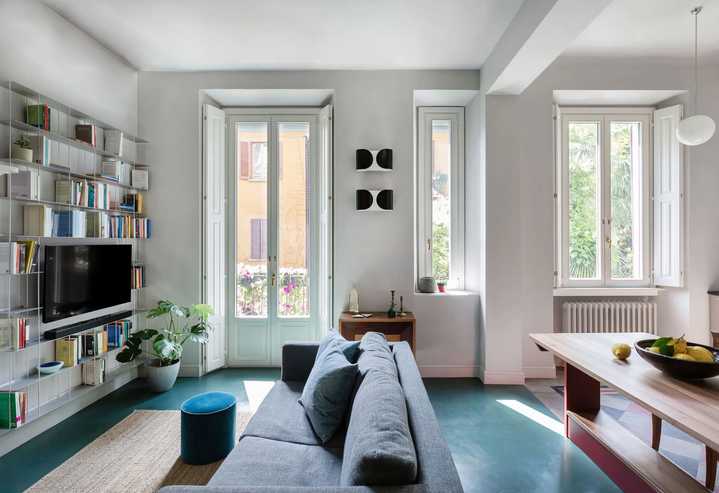 Невелика квартира з бірюзовим підлогом у старовинному будинку в Мілані