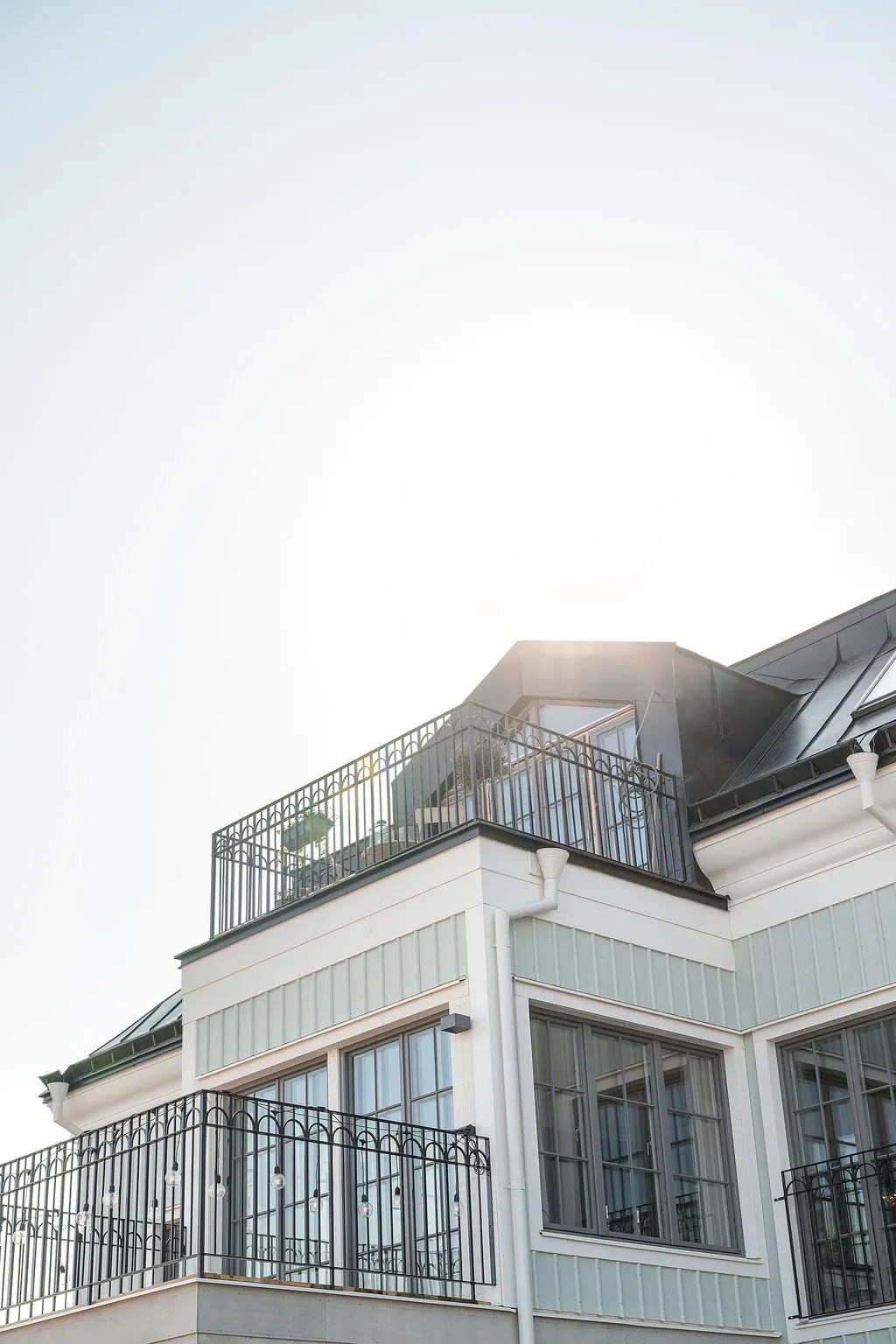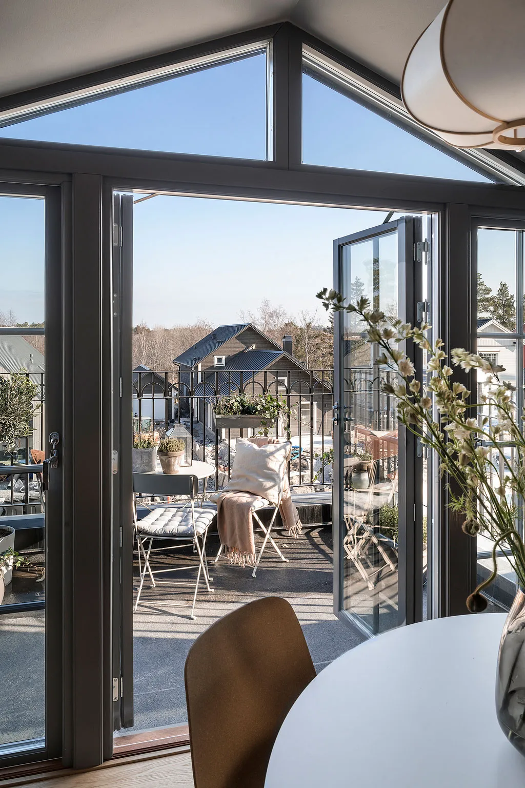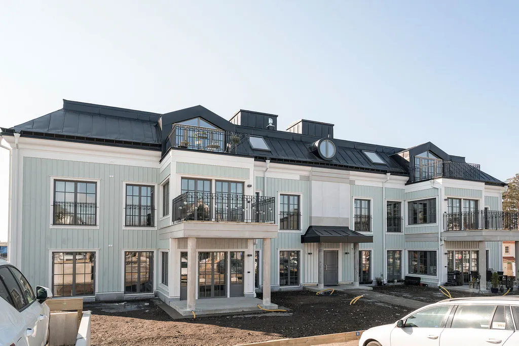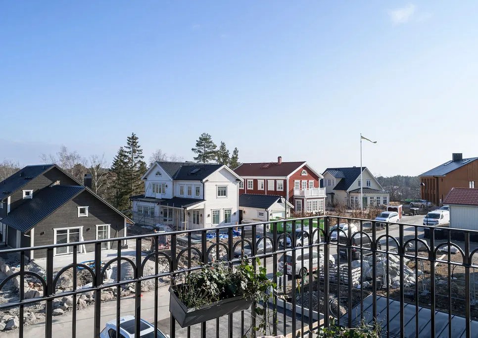 Ця мансарда розташована в красивому новому житловому будинку кілька квартир у тихій місцевості в годині їзди від Стокгольма.