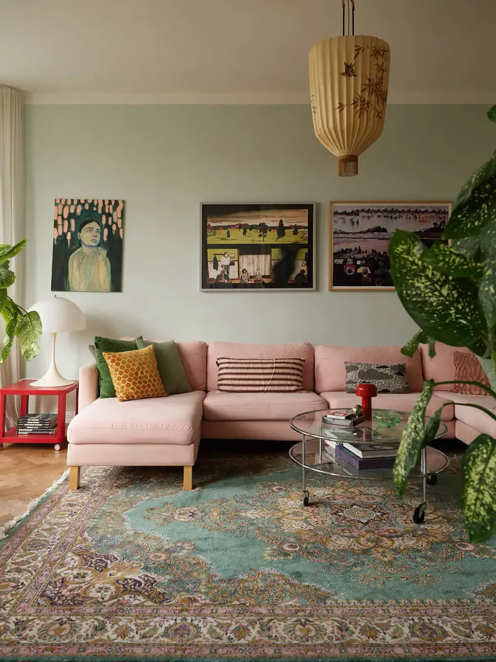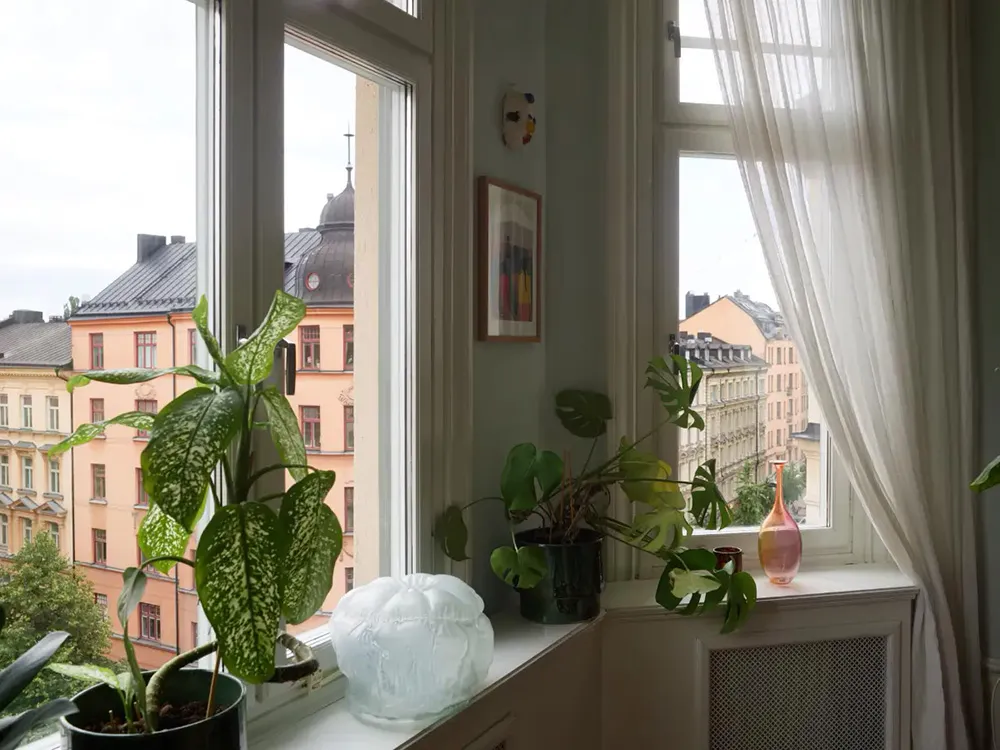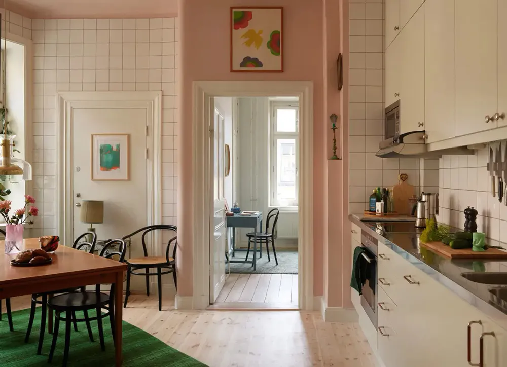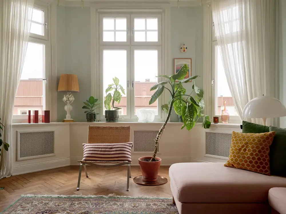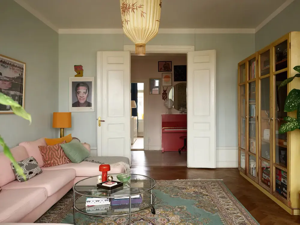 М’які блакитні стіни та рожевий диван: приємний живий інтер’єр у Стокгольмі