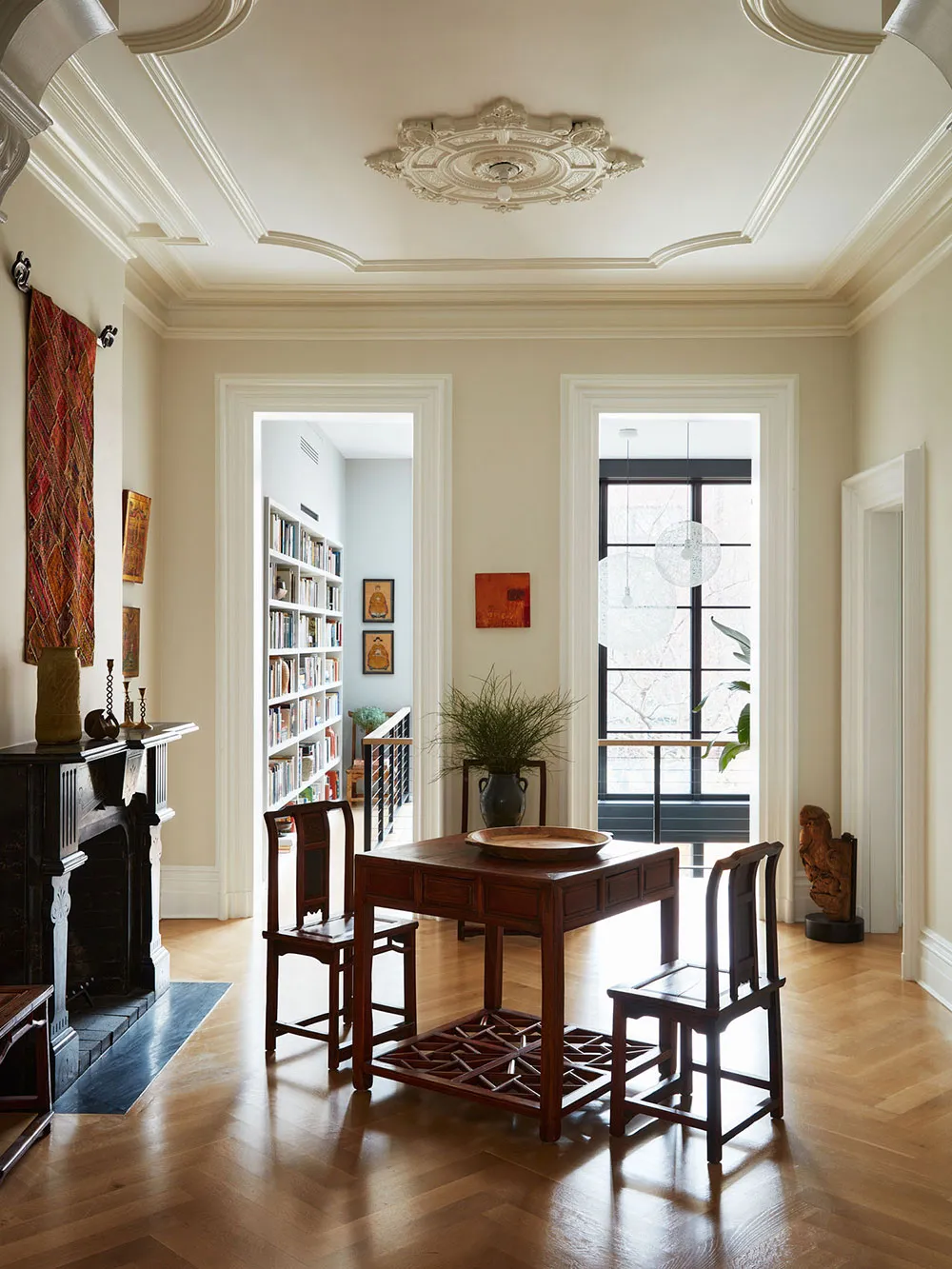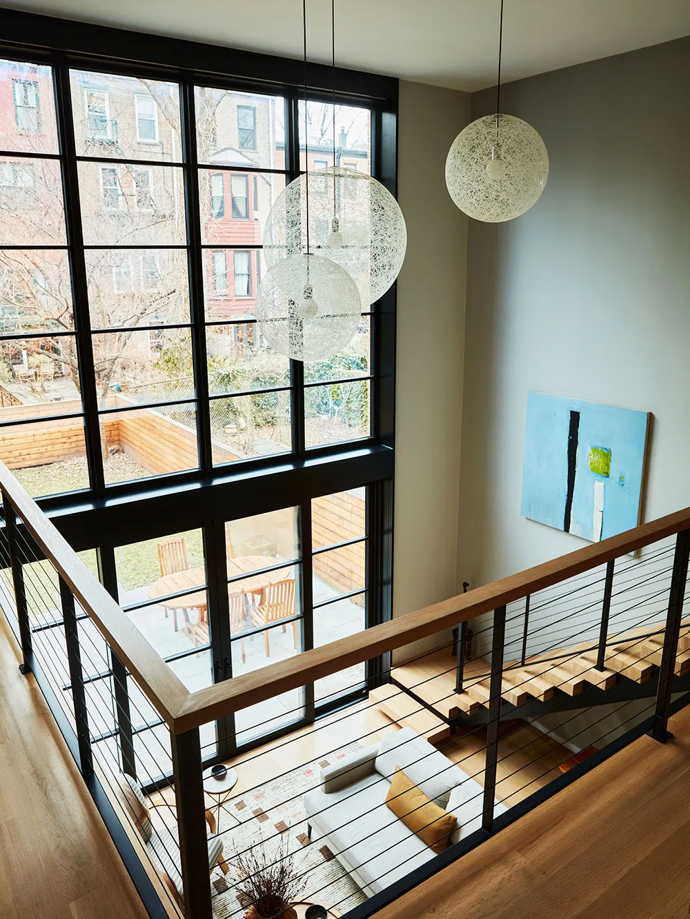 Головна дизайнерська особливість цього таунхаусу у Брукліні — розкішні індустриальні вікна в два рівні та друге світло в гостиній, яка розташована у задній частині будинку.